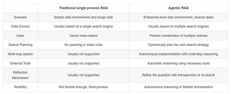 Agentic RAG's “agent” feature is mainly reflected in the retrieval stage. Compared to the retrieval process in traditional RAG, Agentic RAG is more capable of: